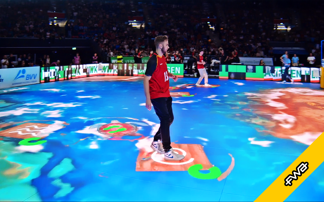 A high-energy multiplayer LED game played live on the stadium court. Players race between shifting islands, capture points, and compete in real time as the entire floor transforms into an interactive digital playground.
